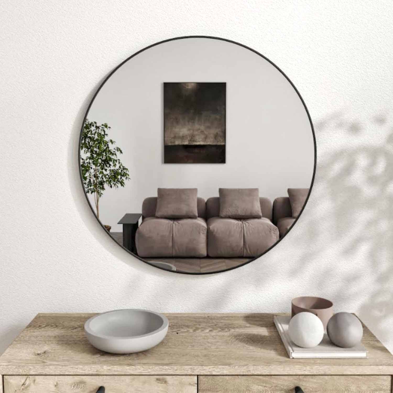 Los espejos funcionan como ventanas ilusorias que duplican visualmente las dimensiones del ambiente. En Living Market, nuestros diseños están pensados específicamente para crear esta sensación de amplitud sin comprometer el estilo. Los modelos circulares biselados, disponibles desde 40 hasta 120 centímetros de diámetro, permiten adaptar la pieza a las proporciones exactas de cada espacio, mientras que sus bordes pulidos añaden un toque de sofisticación que realza cualquier decoración.