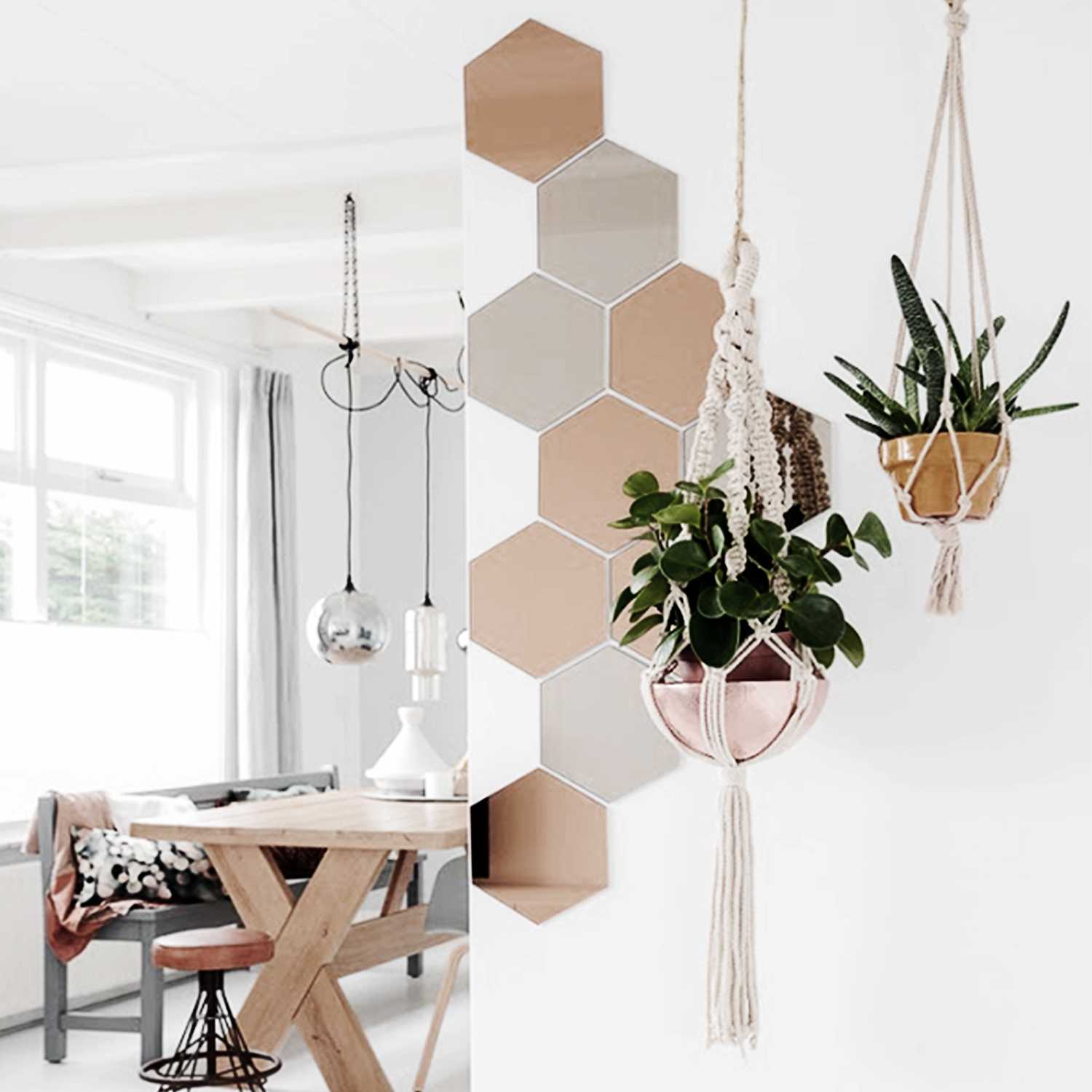 Los espejos hexagonales representan una alternativa innovadora para quienes buscan añadir dinamismo a sus paredes. El set de 6 espejos hexagonales de 20×18 cm permite crear composiciones únicas que funcionan como instalaciones artísticas. Estas piezas pueden disponerse en patrones simétricos o asimétricos, adaptándose a la personalidad y preferencias estéticas de cada usuario. La versatilidad de estos diseños los convierte en complementos ideales para galerías de cuadros o como elementos decorativos independientes.